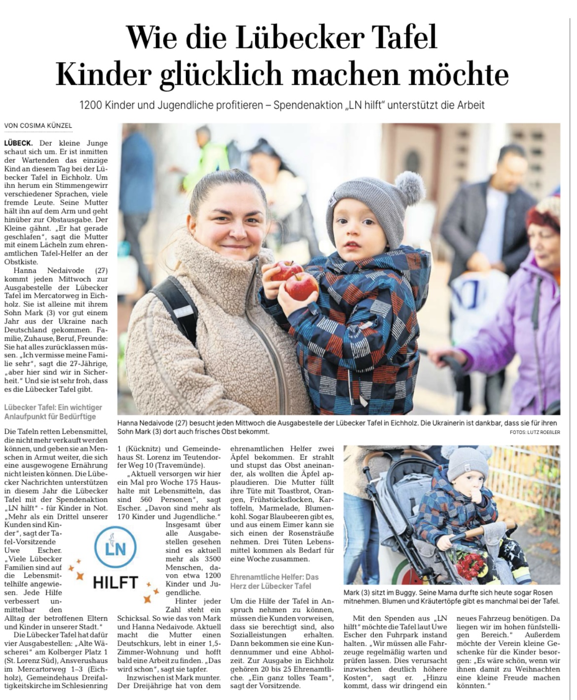 Wir freuen uns sehr dass die Lübecker Nachrichten unsere Tafel in der Spendenaktion unterstützen!